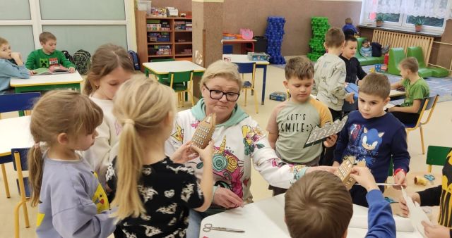 Świetliki pracowały z dużym zaangażowaniem i pomysłowością, wykorzystując różnorodne materiały plastyczne, takie jak kolorowy papier, kredki, flamastry oraz elementy dekoracyjne. Zajęcia przebiegły w miłej i radosnej atmosferze, a wykonane prace były bardzo pomysłowe i estetyczne.