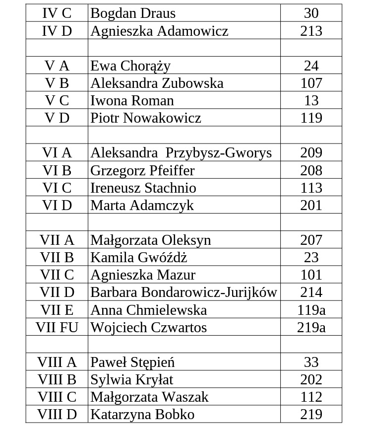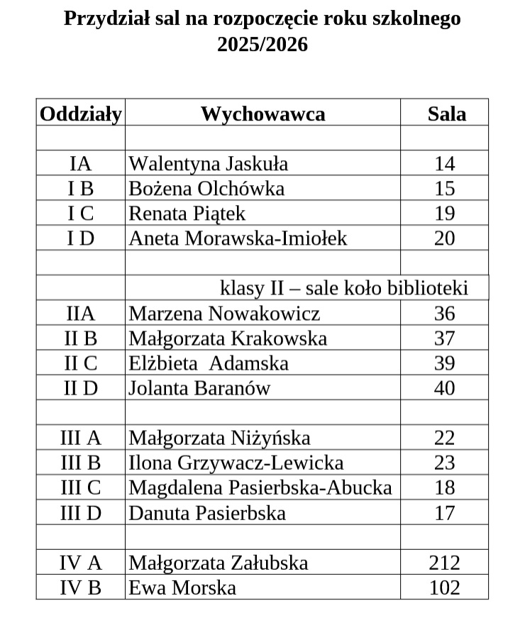 Przydział sal na rozpoczęcie roku szkolnego 2025/2026