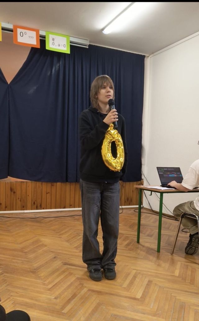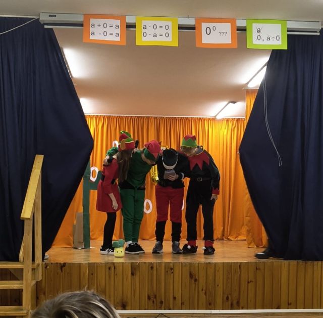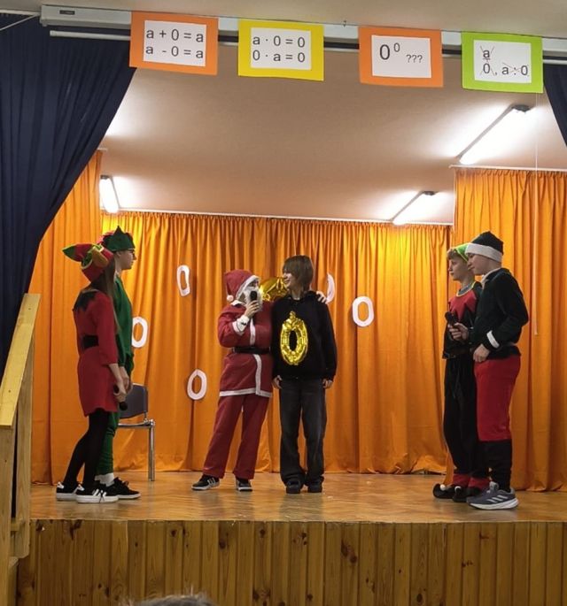 17.12.2025 r. uczniowie koła „Matematyczne orły” z klas 7A i 7D zaprezentowali uczniom przedświąteczne przedstawienie o liczbie zero.
