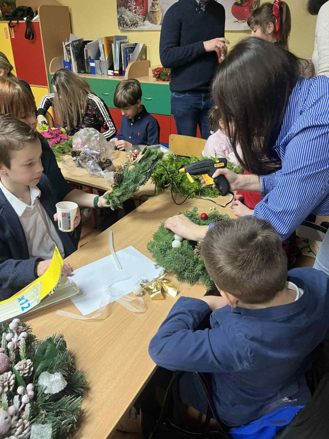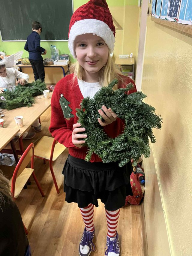 15 grudnia w godzinach popołudniowych sala szkolna wypełniła się świąteczną atmosferą podczas spotkania uczniów i rodziców klasy 3 a. Uczniowie zaprezentowali nowoczesną interpretację „Opowieści wigilijnej” Charlesa Dickensa, wprowadzając widzów w klimat refleksji i bożonarodzeniowej magii. Następnie dzieci wraz z rodzicami z zaangażowaniem przygotowywały wieńce bożonarodzeniowe, które zostały przekazane na szkolny kiermasz. Wydarzenie sprzyjało integracji, wspólnemu działaniu i było pięknym wstępem do nadchodzących świąt.